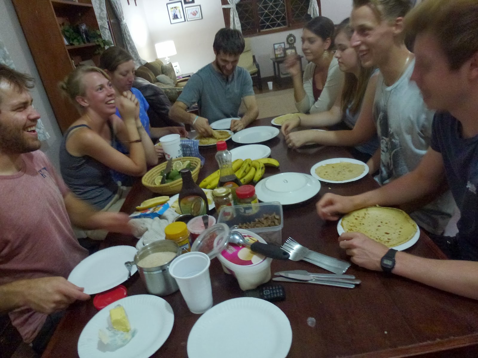 I hosted "game night" one night. We had crepes in honor of Britain's National Pancake Day (pancakes are crepes there). We have several British friends here in Mbale. We had so much fun!